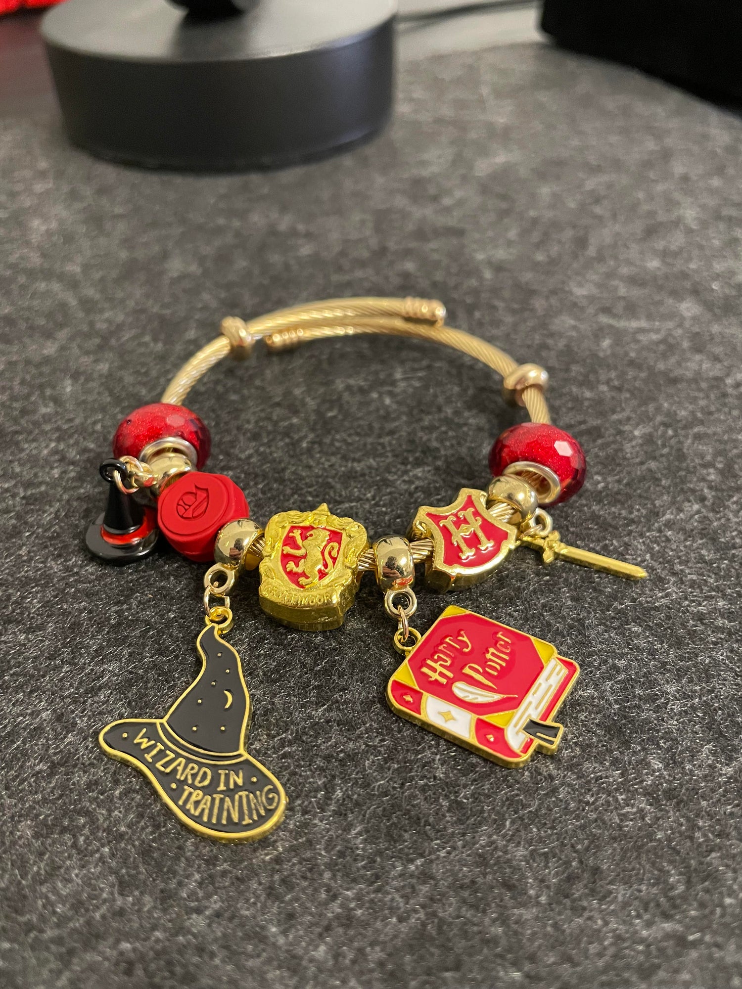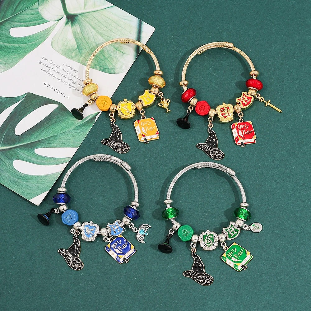 Add a touch of magic to your everyday style with this beautifully detailed charm bracelet inspired by the four iconic Harry Potter houses.